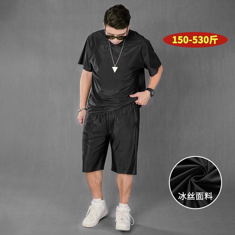 大きいサイズの男性の速乾の氷の糸の半袖は太って夏の新型のゆったりしているレジャーのスポーツのスーツの潮の2367を増加します。