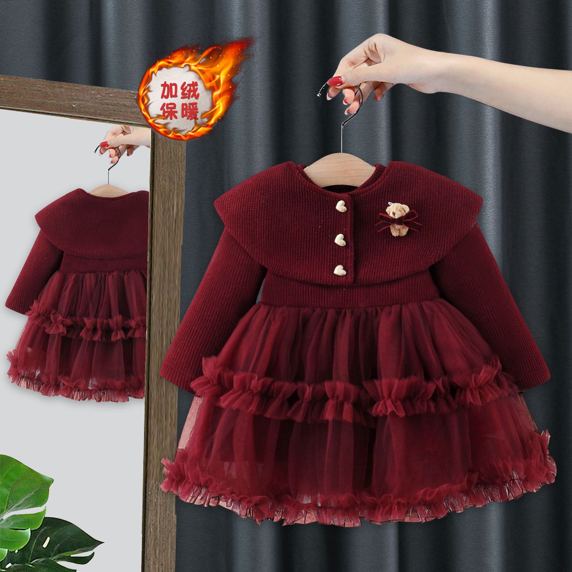 子供ワンピース冬の新型女の子洋気マントワンピース2点セット女の子ベルベットプリンセススカート5049