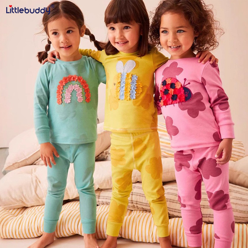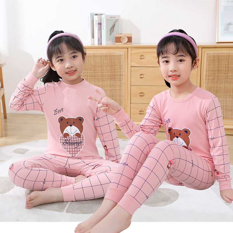 子供用パジャマセット 秋の新作 ライクラ綿 ベビー下着 男の子用ホームウェア 女の子用秋服 子供服卸売