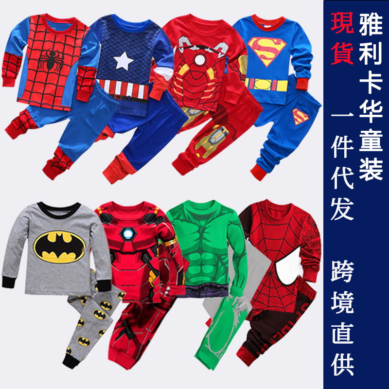 春と秋の冬の男の子の綿のパジャマの長袖の男の子の子供の漫画のスーツの赤ちゃんの家の服のスパイダーマンのアメリカの隊長