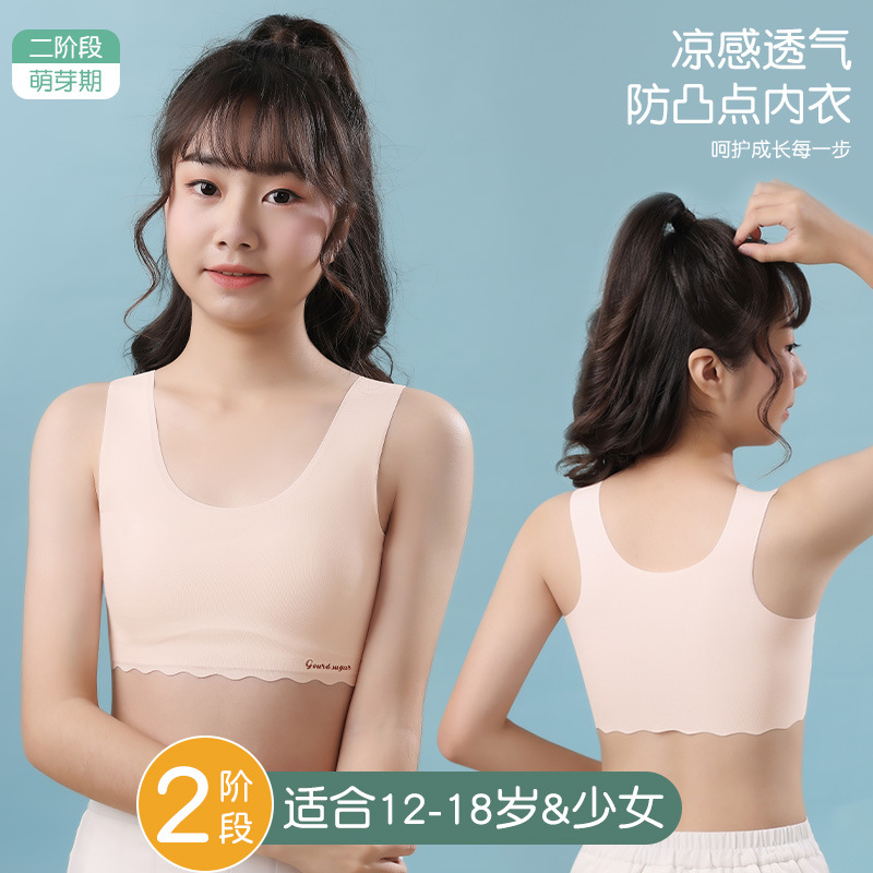 7-14歳の女の子の下着発育期ベストアイスシルクシームレス学生中学生スポーツ通気性ガールブラジャー薄い