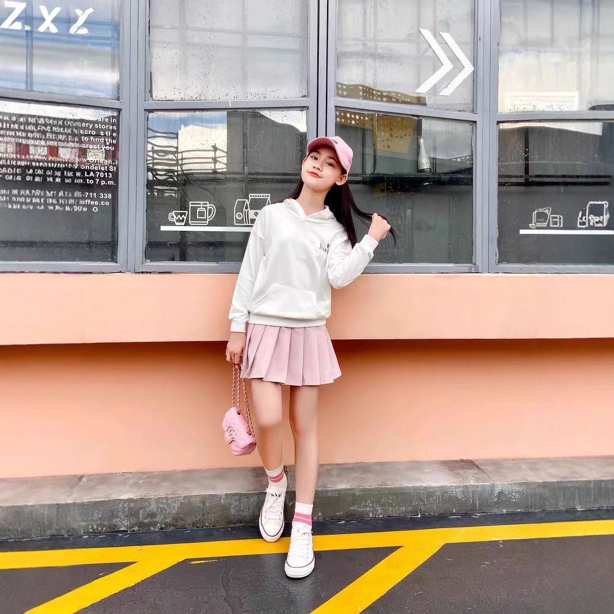 女子学生風プリーツスカート、小学生向け秋用白子供服jkスカート、中高生向け春秋スカート