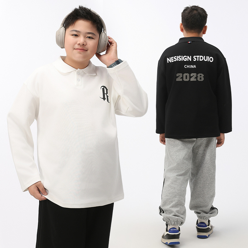 太った男の子の春秋服poloシャツ春のtシャツの大きい子供の襟のシャツの大きいサイズの長袖の太った子供服は太っています。