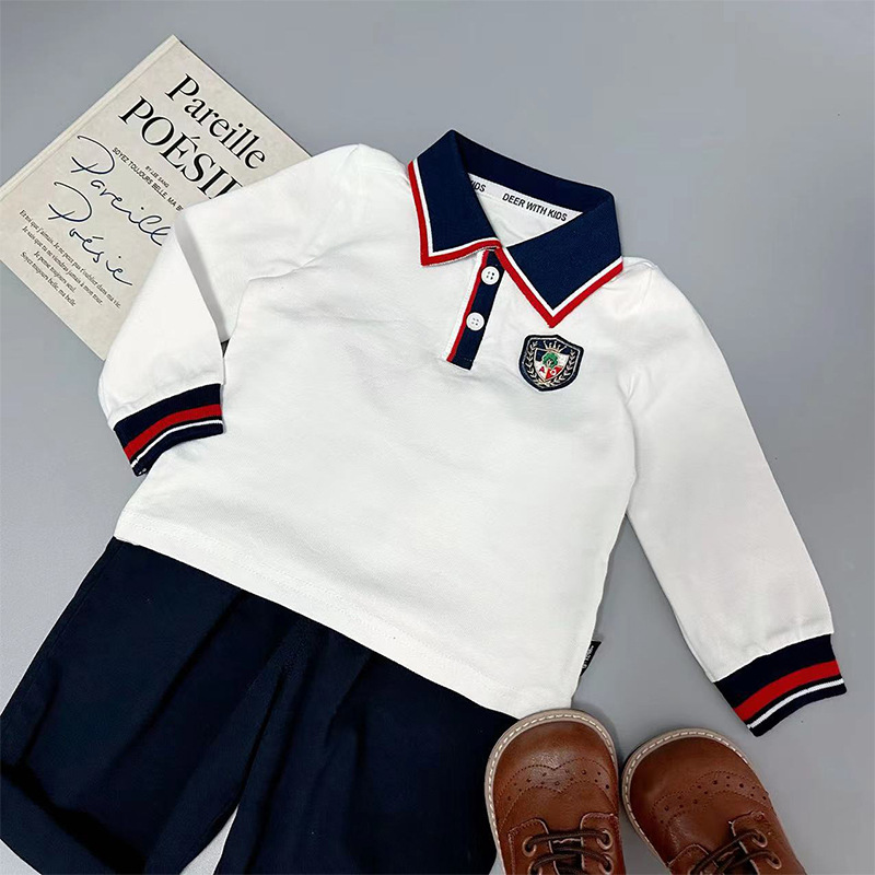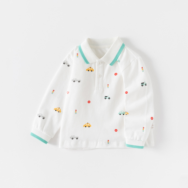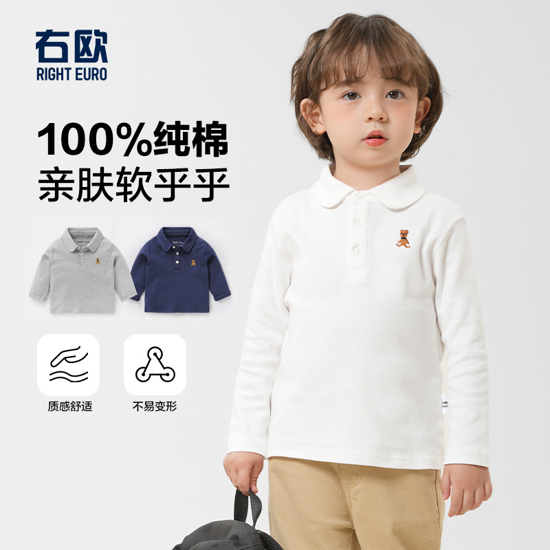 男の子用純綿ポロシャツ、襟付き長袖Tシャツ、おしゃれな秋服、春秋子供服、ベビー用インナーシャツ、トップス