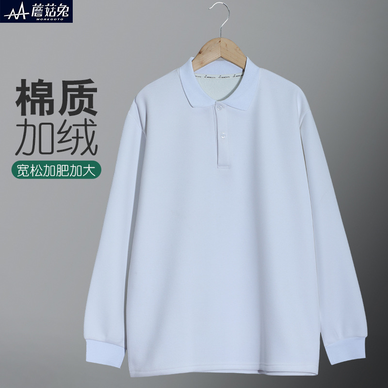 大きいサイズの子供服の太った男の子のベルベットpoloシャツの長袖の純白のクラス服の制服の男の子は襟の薄いベルベットのシャツをめくります。