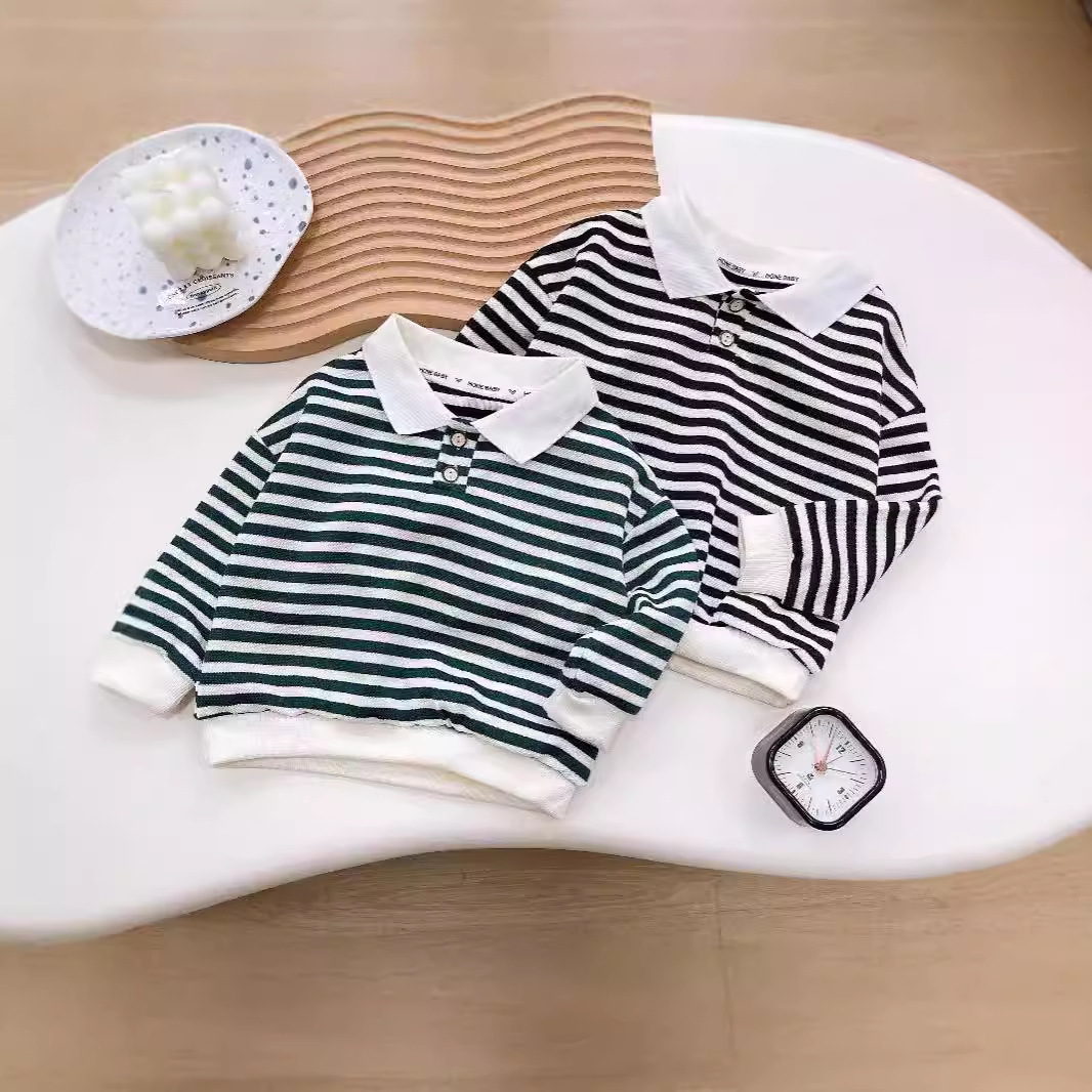 男児ストライプpoloシャツ2025春と秋の新型赤ちゃんの襟の上着t韓国版ファッション子供tシャツファッションクール