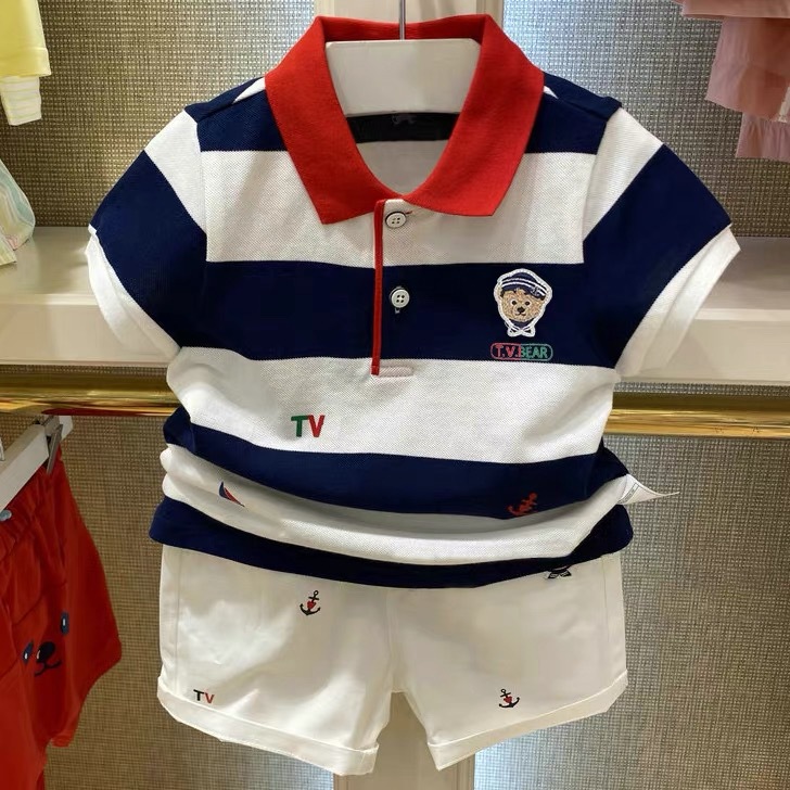 2025男児poloシャツ韓国版ストライプ子供半袖tシャツ赤ちゃんの襟折りカジュアル半袖上着ファッション卸売