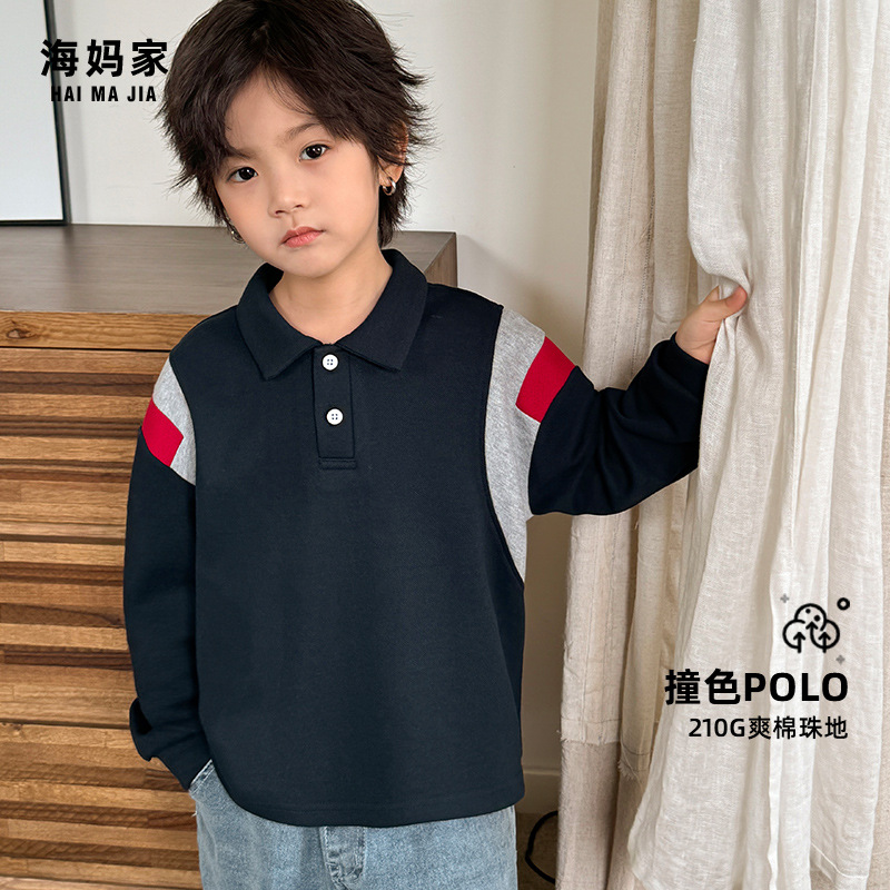 海のお母さんの家の2025新型の男の子の韓国版はpoloのシャツの春秋の金の中で大きい子供の洋気の上着の長袖のtシャツを折ります。