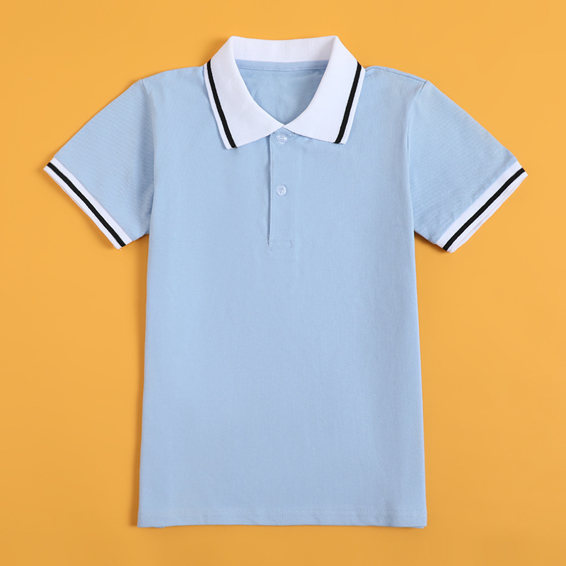小中学生制服青ホワイトカラーpoloシャツ半袖tシャツ男児女児学院園服班服半袖tシャツ