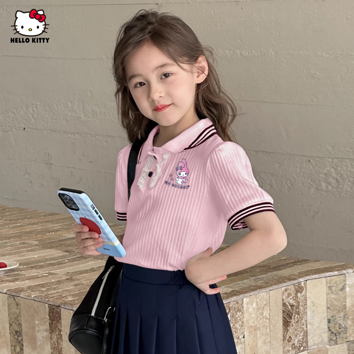 国境を越えた人気の女の子ポロシャツ韓国風半袖Tシャツ子供用夏の漫画プリントファッショナブルなボトムシャツ