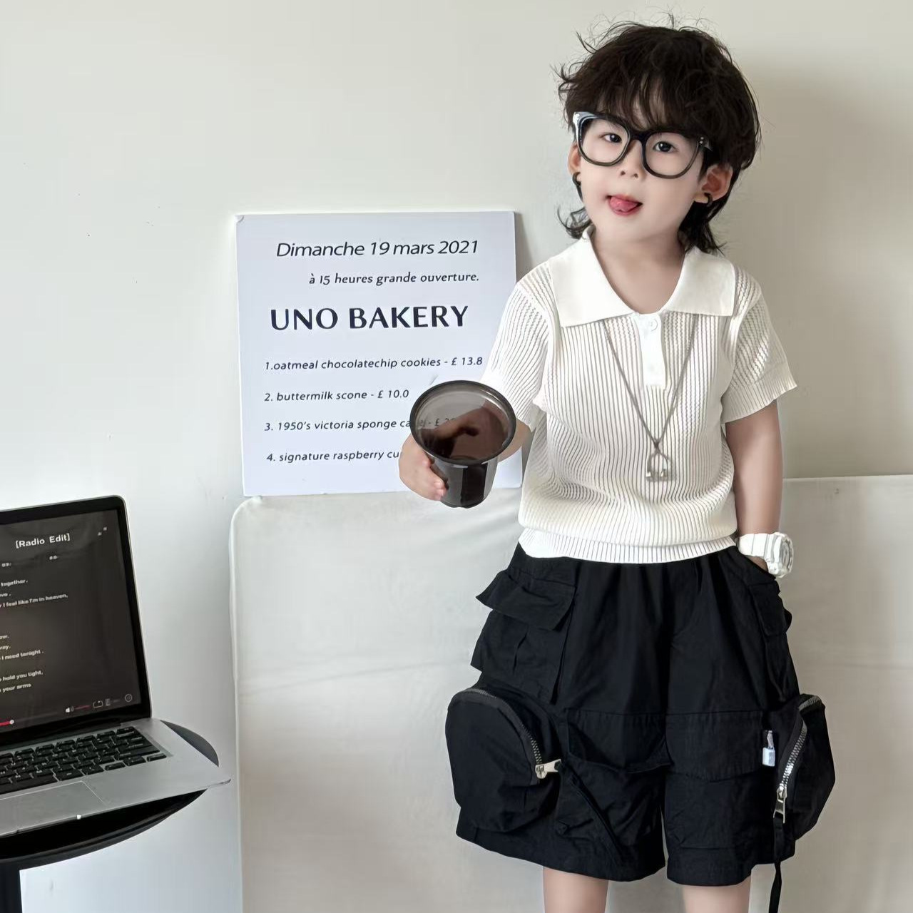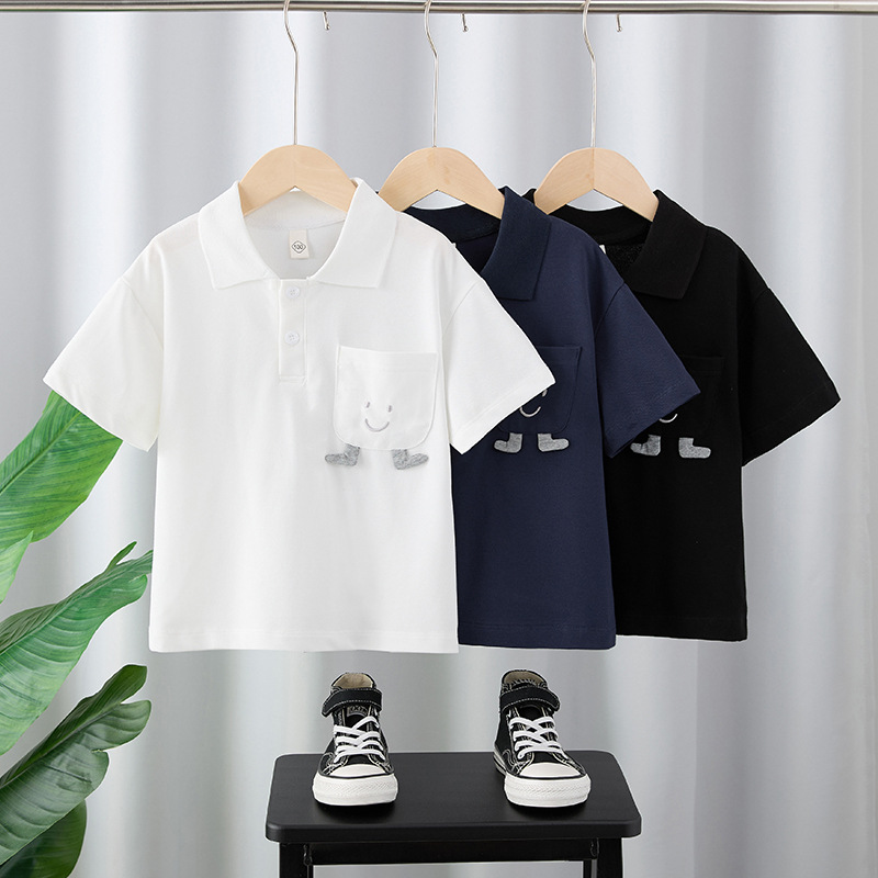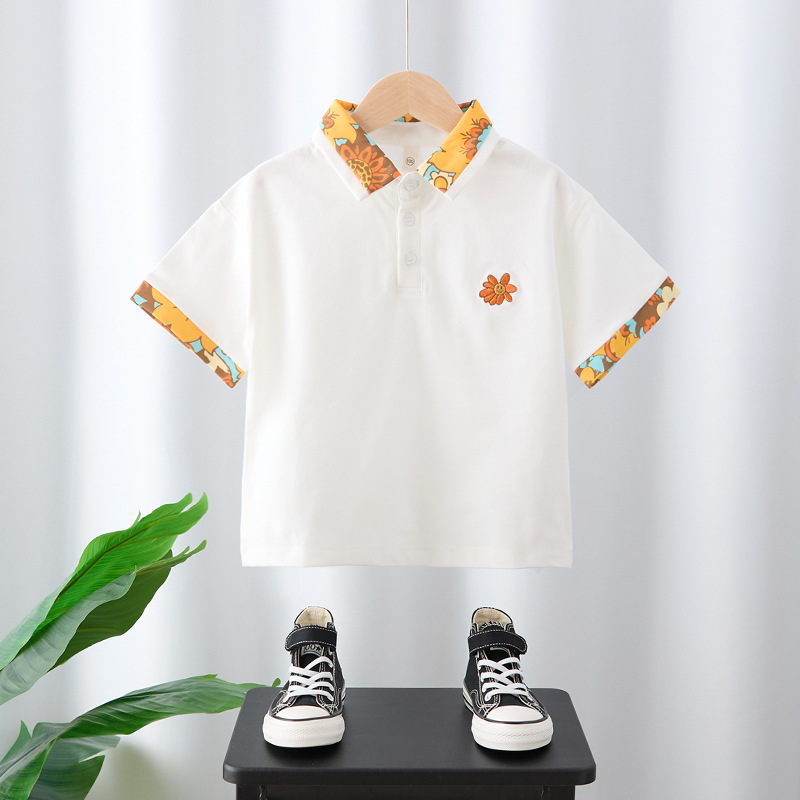 男の子半袖Tシャツポロシャツ夏子供純綿半袖トップ薄い男の子ハンサムTシャツラペルトレンディT