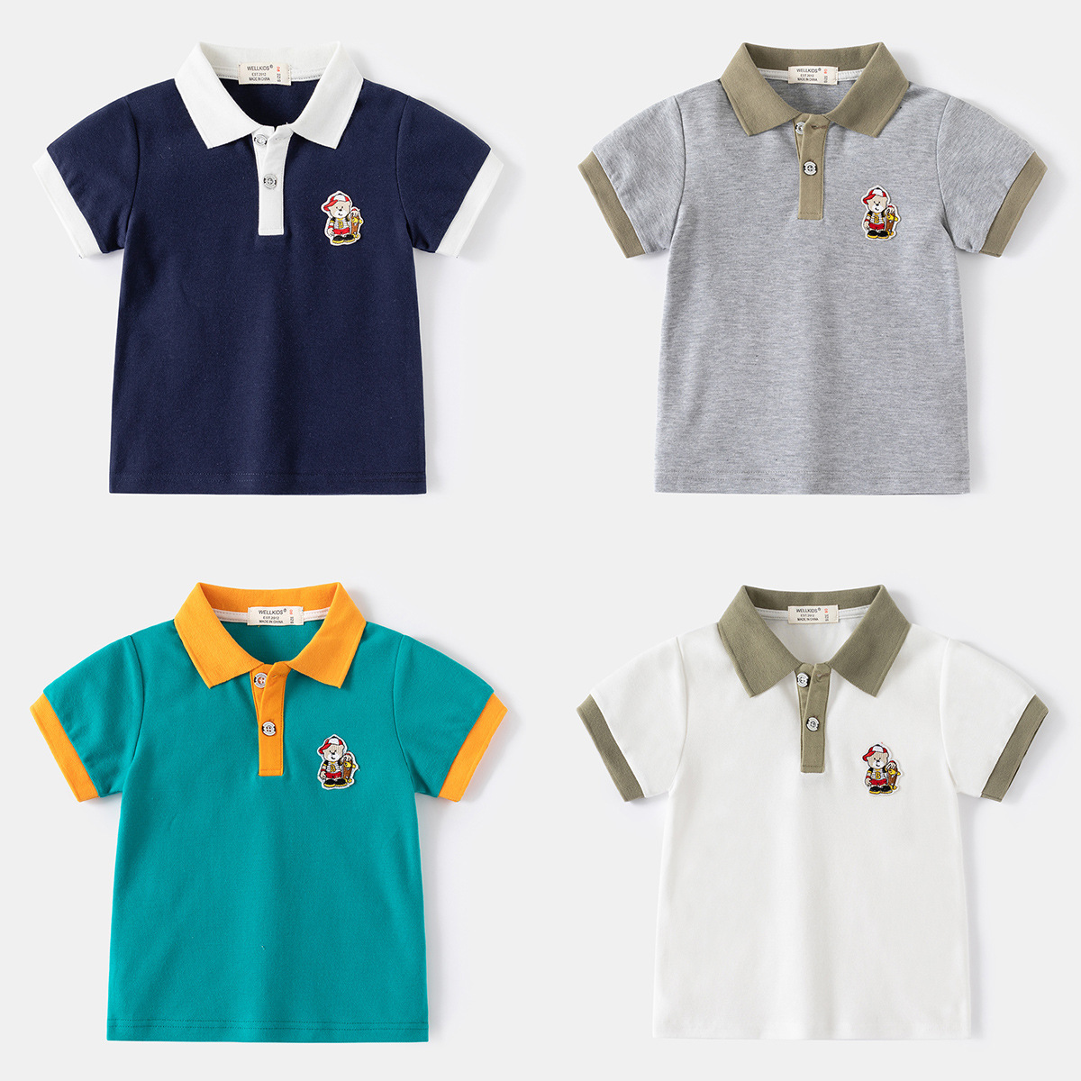 子供ポロシャツ半袖夏男の子ラペルコットン Tシャツ男の子夏刺繍半袖ベビーカジュアルトップ