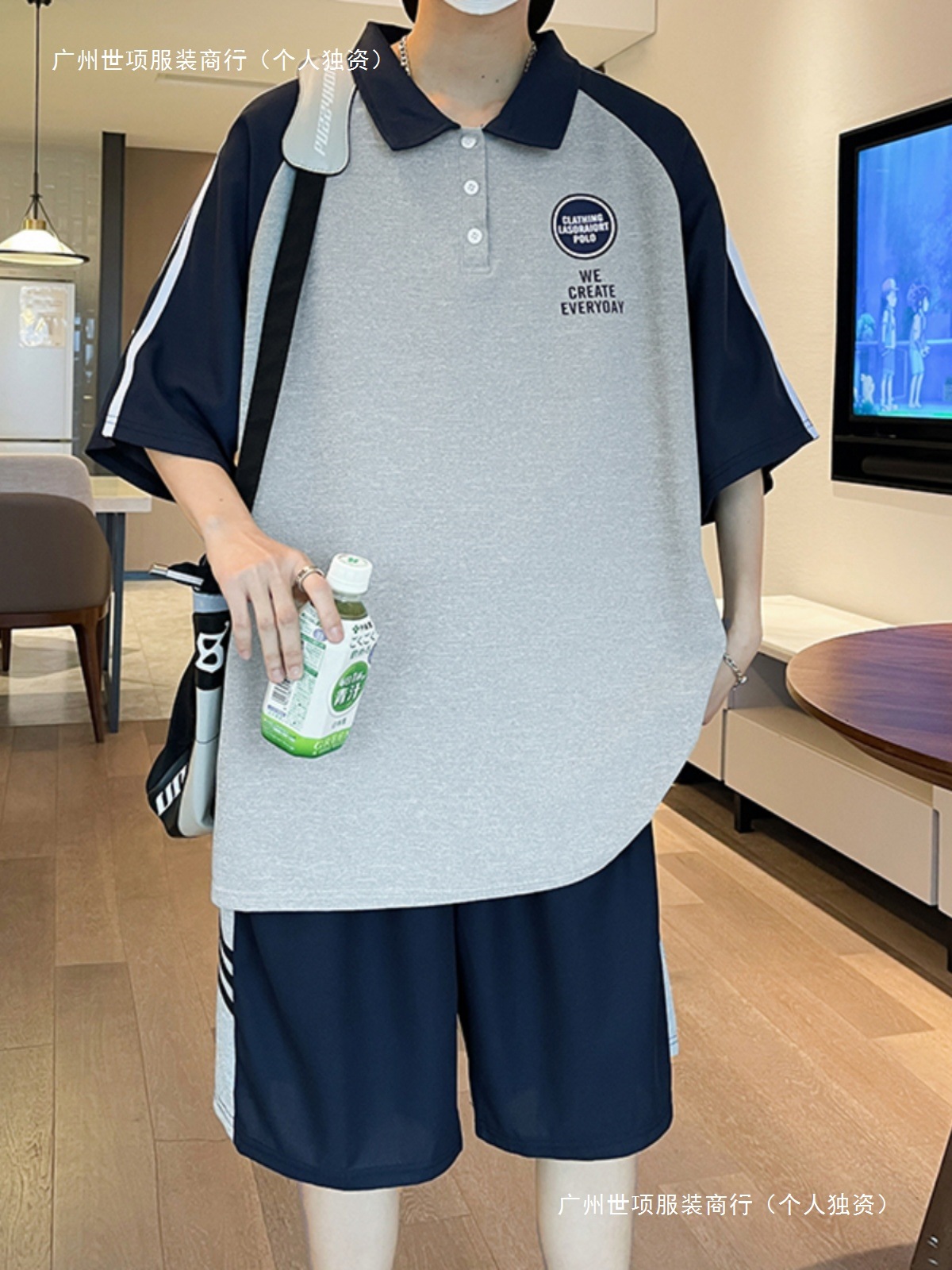 ティーンエイジャーの夏スーツ男の子中学生年長児薄いラペル半袖Tシャツハンサムメンズポロシャツ