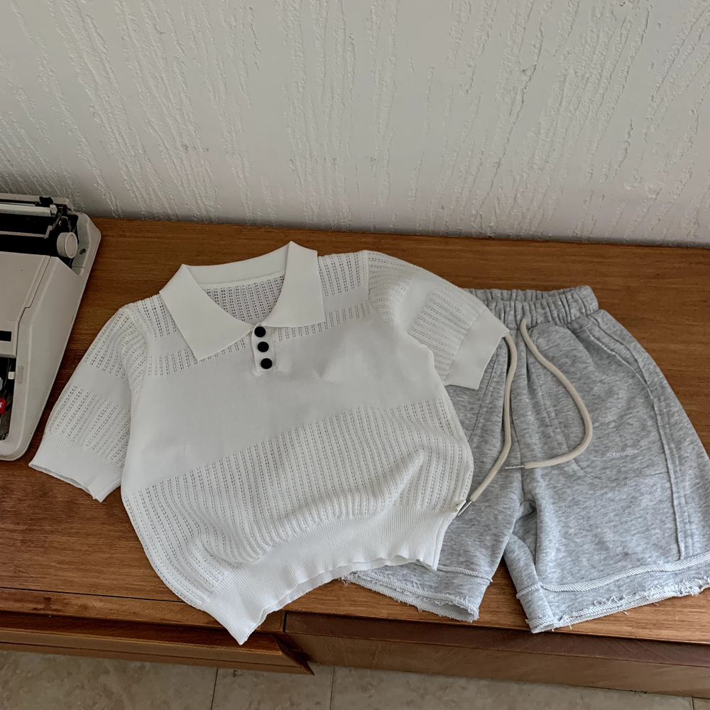 韓国子供の夏 2025 新しいハンサムスタイルニットポロシャツ半袖 Tシャツメッシュ通気性カジュアルガールズ T トレンド
