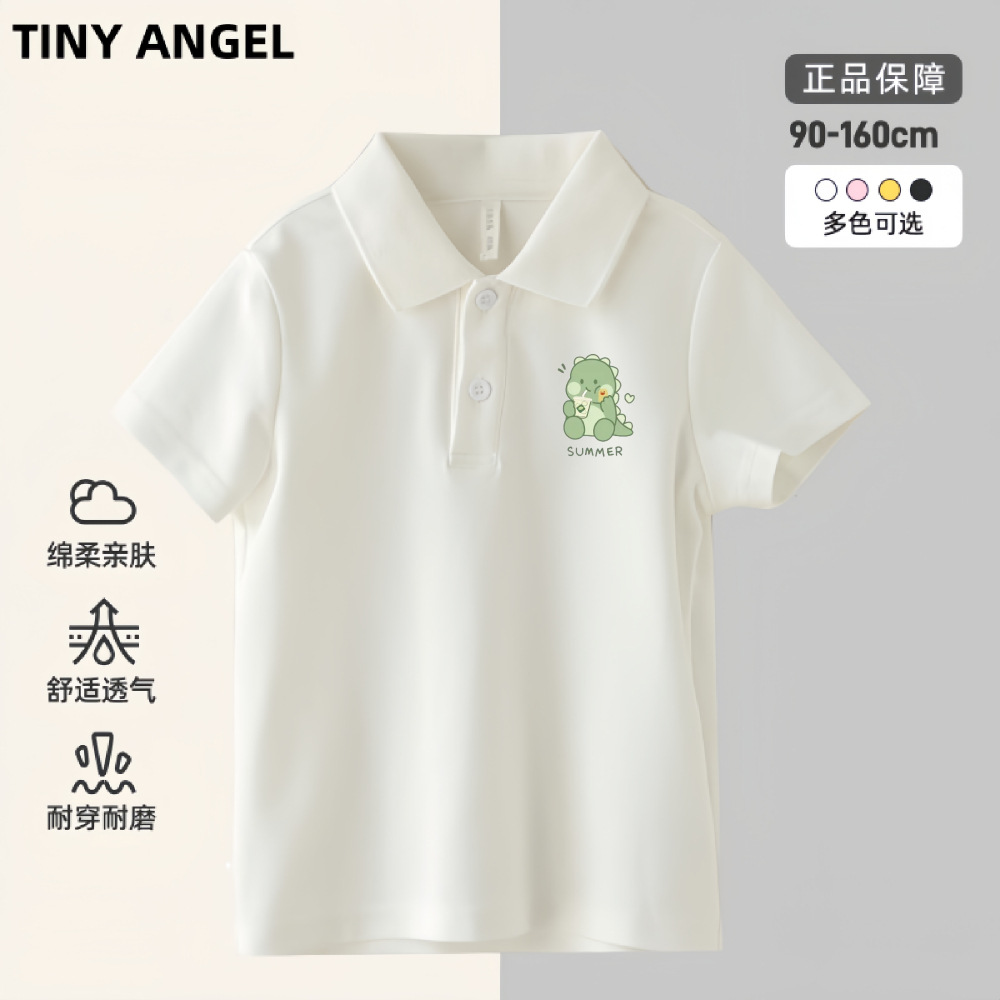男の子と女の子の夏の薄い純綿ポロシャツ夏の新しい中型と大型の子供用漫画プリント多用途ラペルポロシャツ