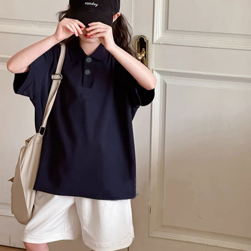 女の子韓国ポロシャツ半袖Tシャツ夏服子供新しいスタイル小さな女の子かわいい西洋スタイルラペルカジュアル半袖