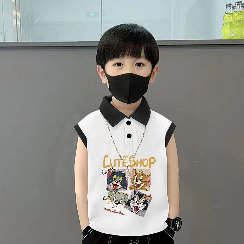 子供用Tシャツ男の子ラペルポロシャツ2025夏新スタイル中大型子供用ノースリーブベストトップハンサム子供服