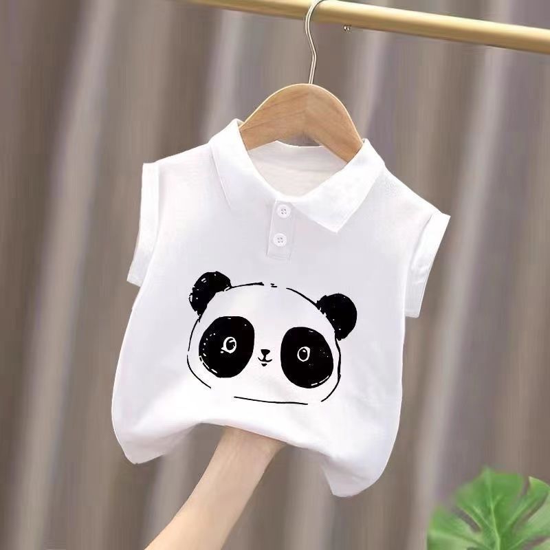 中大子供用純綿ノースリーブポロシャツ2025年夏新作男の子と女の子の服、ファッショナブルなベビーインターネットセレブトップトレンド