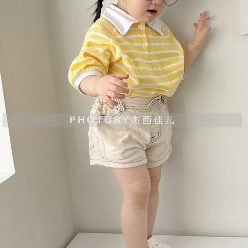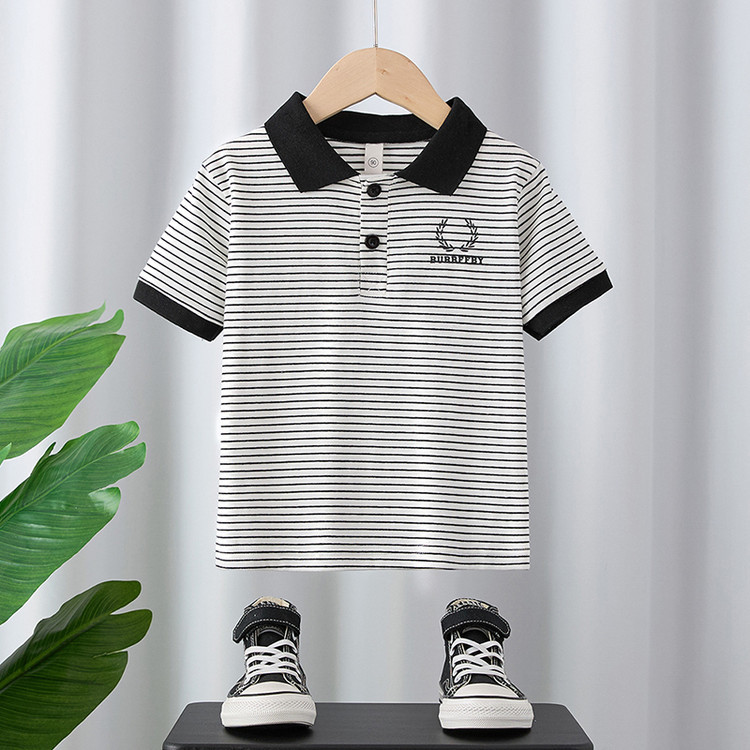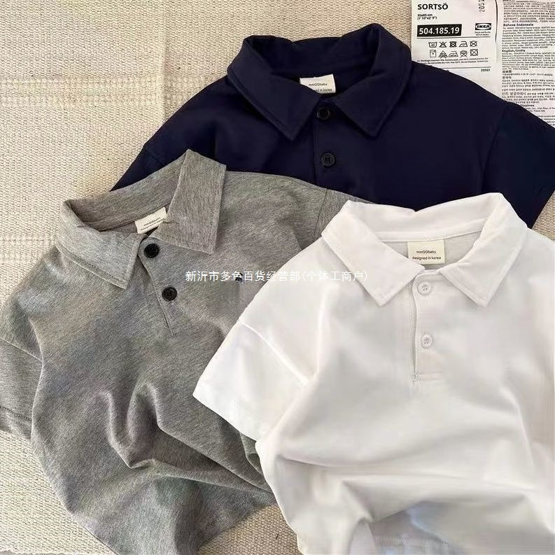 8244 ボーイズサマー Tシャツ子供韓国風ラペル半袖ポロシャツトップボーイズ夏服薄いトレンディなスタイル