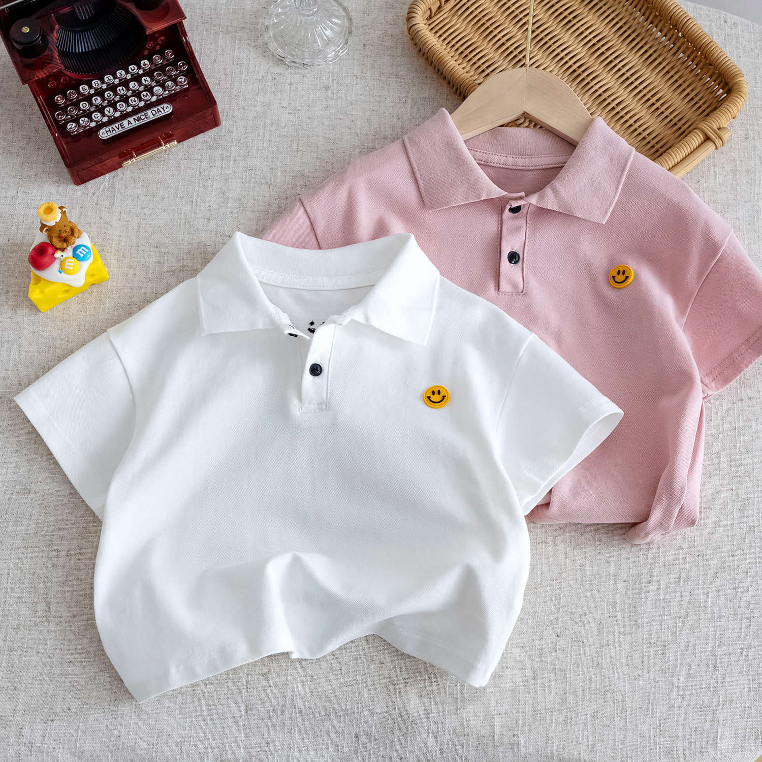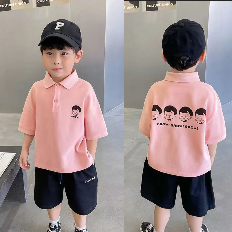 男の子半袖ポロシャツ夏薄手子供ピンクTシャツベビーカラー半袖トップ