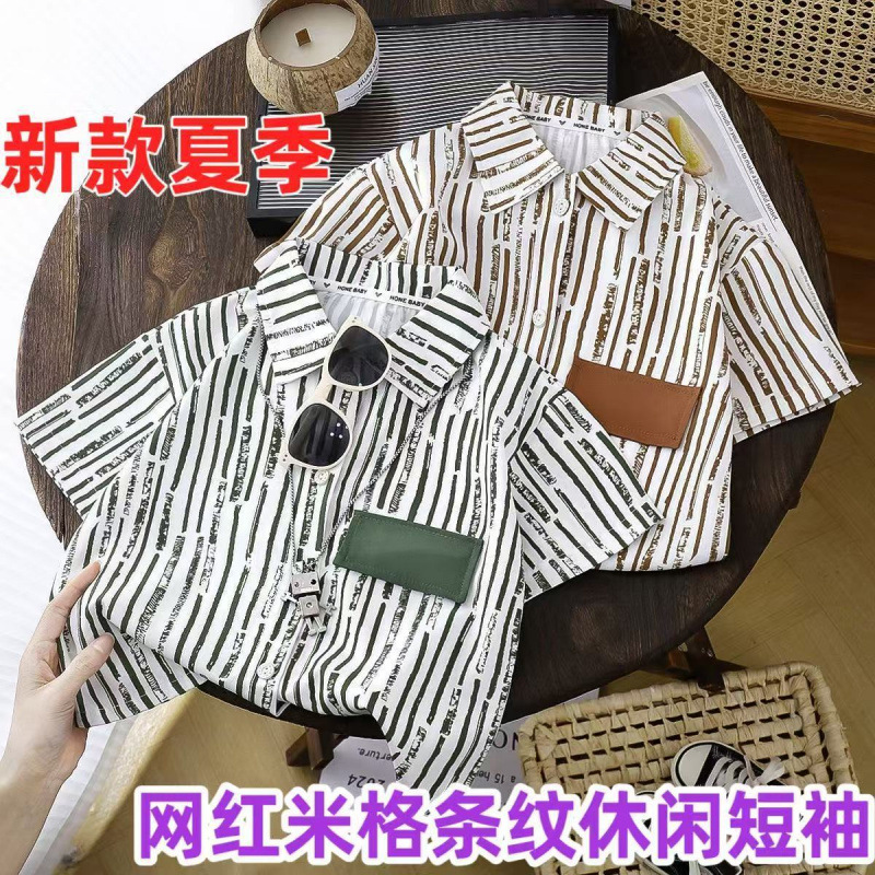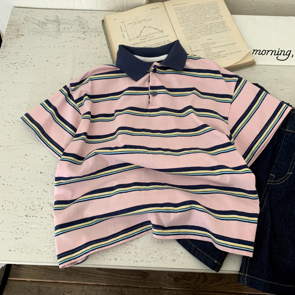 子供用夏ポロシャツ半袖ストライプネットレッドボーイ韓国中大型子供多用途ラペルハンサムカジュアルTトップ