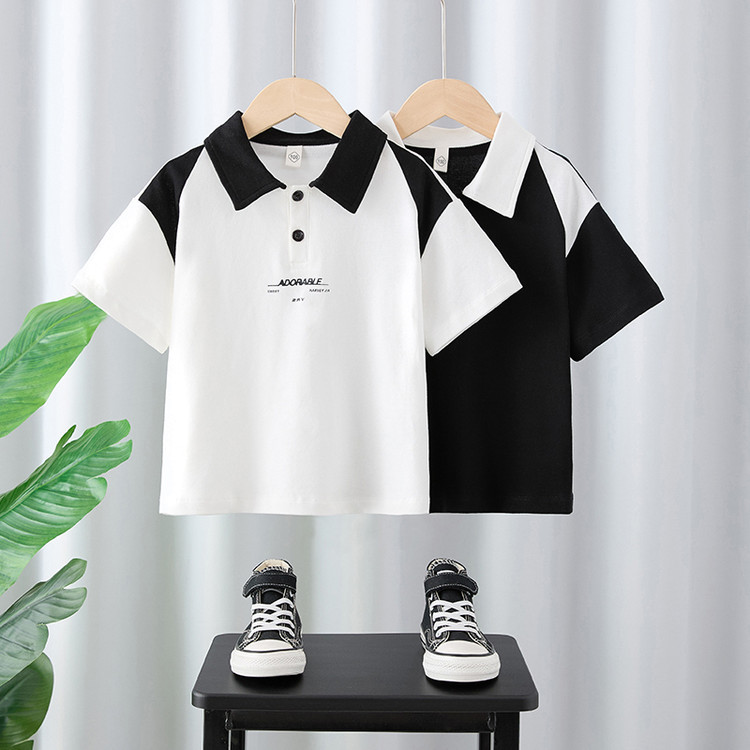 ボラ韓国子供服男の子poloシャツ2025新作夏中大童折り襟子供用衝突色半袖tシャツ