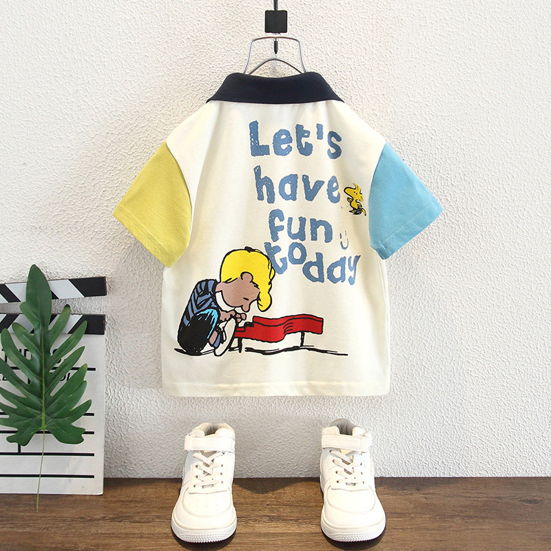 スヌーピーボーイズポロシャツ夏の新しい半袖ファッショナブルでハンサムなボーイズTシャツラペルコットン子供用トップ