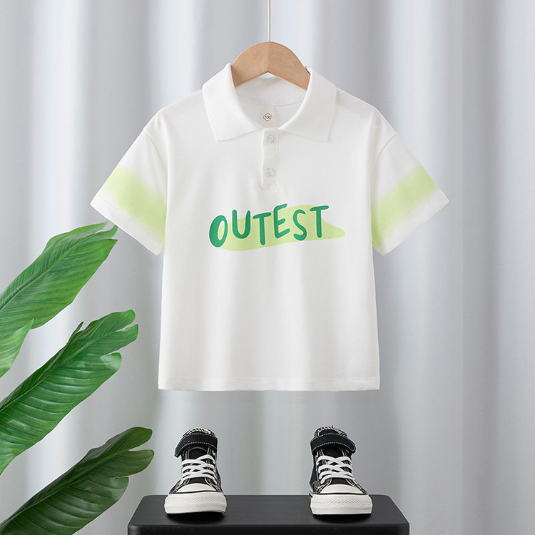 子供の 2025 夏の新しいポロシャツレタープリントベビーボーイラペル Tシャツ半袖小、中、大子供服