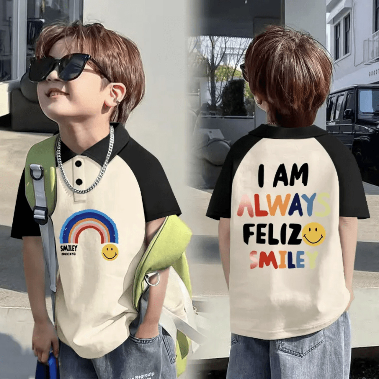 純綿夏半袖 Tシャツ子供用ラペルポロシャツ中型および大型子供用ハイエンドプリントトップ 2025 新しい男の子