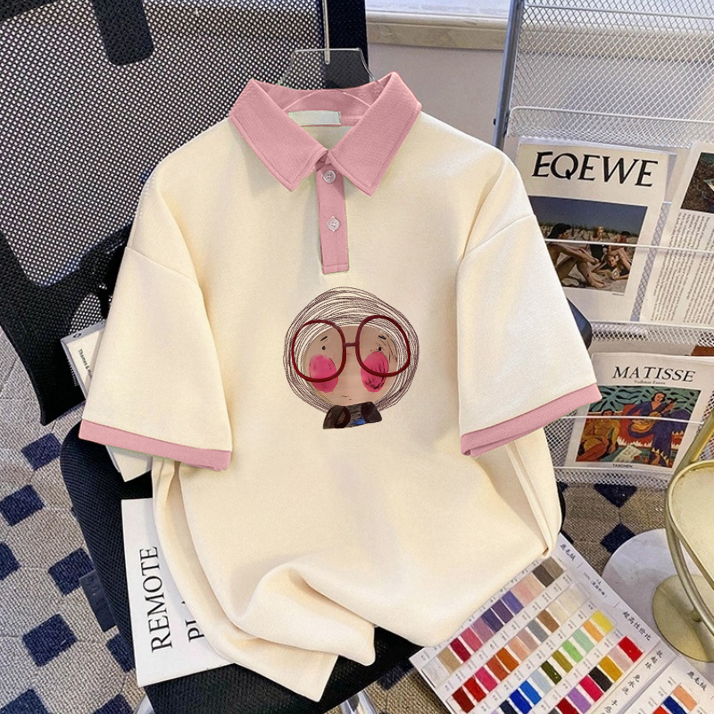 2025 新しい夏の女の子の薄いラペルトップカレッジスタイルポロシャツ半袖ファッションカジュアルコットン tシャツ