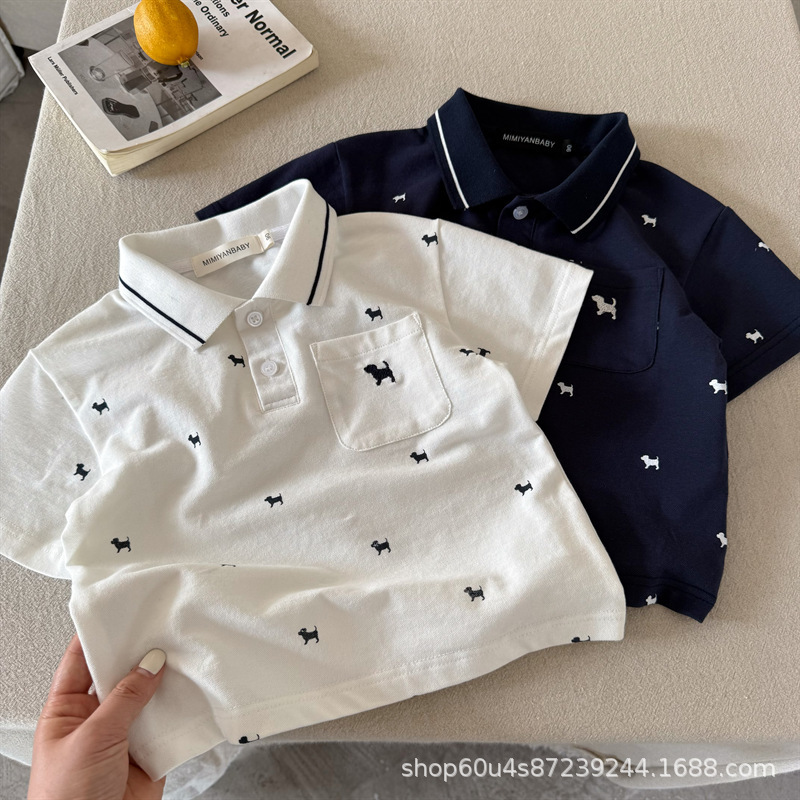 2025年夏の新製品男の子と女の子の刺繍入り子犬ポロシャツベビーラペル