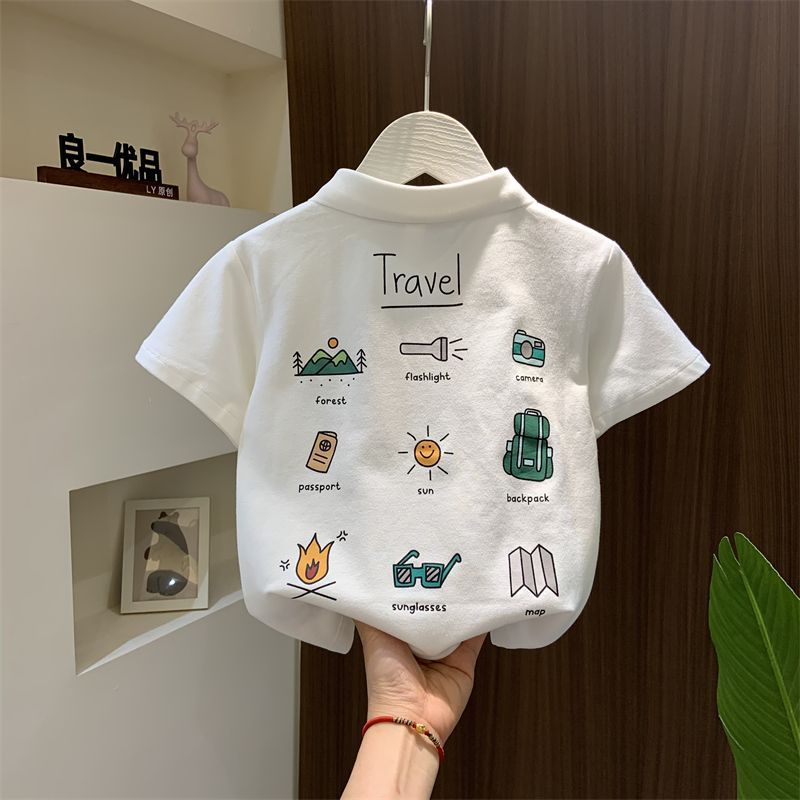 男の子の夏スタイルラペル半袖Tシャツ子供漫画ポロシャツ子供女の赤ちゃんスタイル半袖トップT