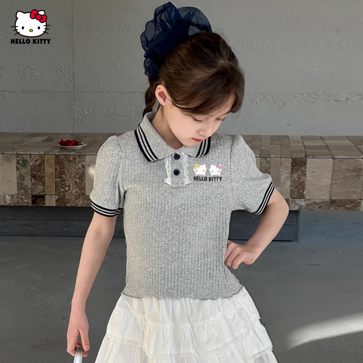 ハローキティハローキティガールズサマーTシャツ2025新しい甘いポロカラーバイタリティリトルガールトップ