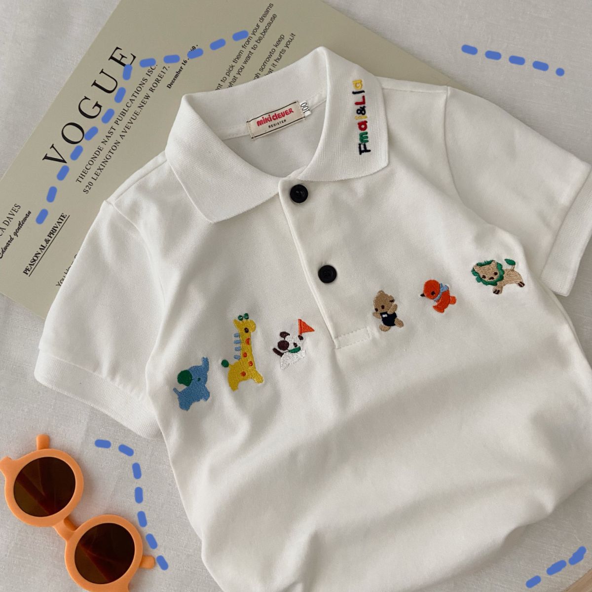 韓国子供服男の子半袖Tシャツ夏の新しいスタイル韓国風ラペル子供ベビー風刺繍トップス