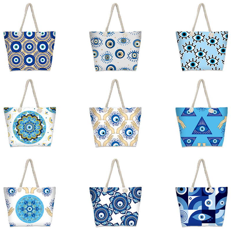 アマゾンの新型邪悪な目のビーチバッグは携帯旅行のレジャーショルダーバッグの大容量のトートバッグです。