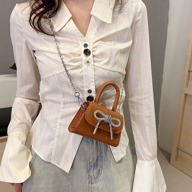 蝶結びの韓国風の小さい方のカバンの女性2025新型のミニのカバンのシンプルなチェーンの肩の斜め掛けのカバン