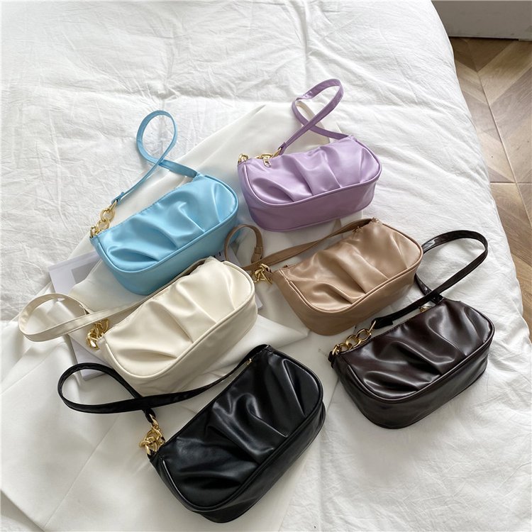 2024新型気質ファッションデザイン片肩斜めショルダー洋気純色レトロな明るい面の小さい方の質感の脇下バッグ