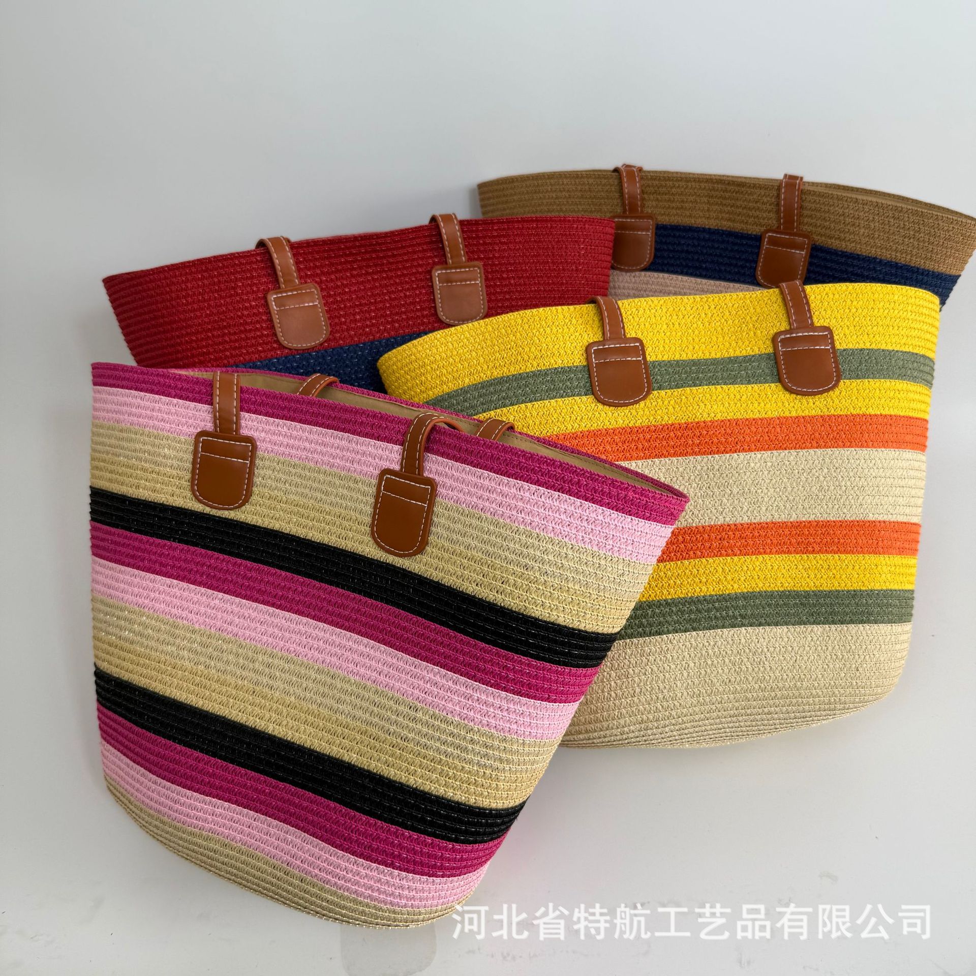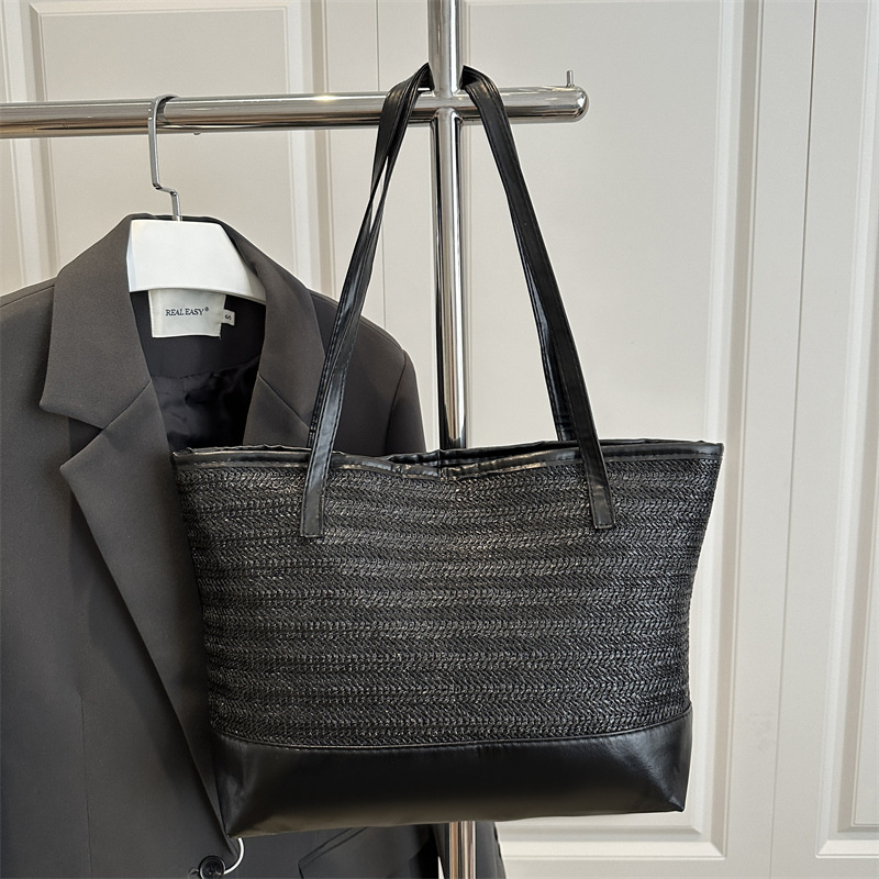 2025新型ファッション草編み大容量海辺新型シングル肩編みリゾート通勤ビーチトートバッグ