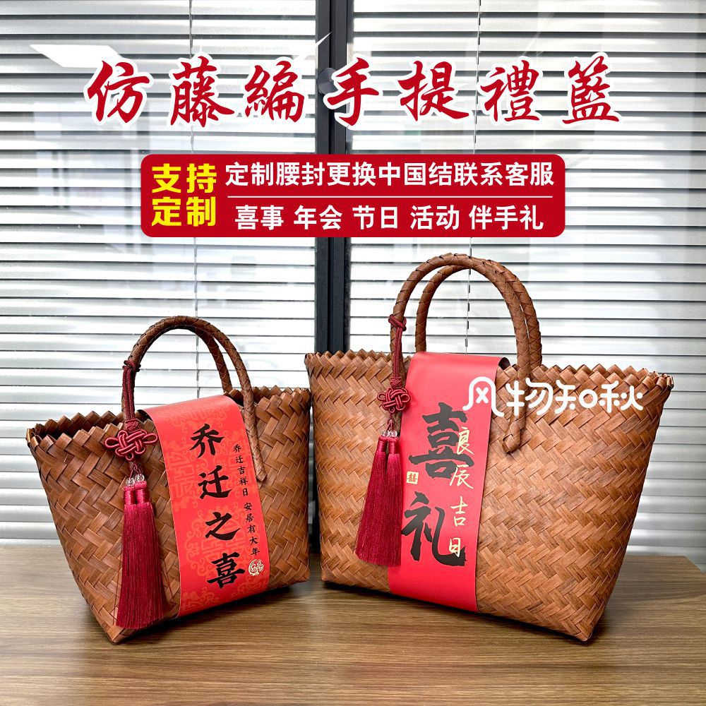 新しい中国風模造籐編みバスケットポータブルバスケットブライズメイド記念品結婚式ギフト包装満月誕生日新築祝い