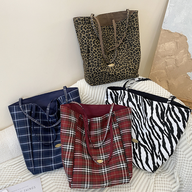 女子大生向けの大容量チェック柄キャンバスバッグ、通学用キャンバスバッグ、万能通勤トートバッグ、お出かけ用ハンドバッグ