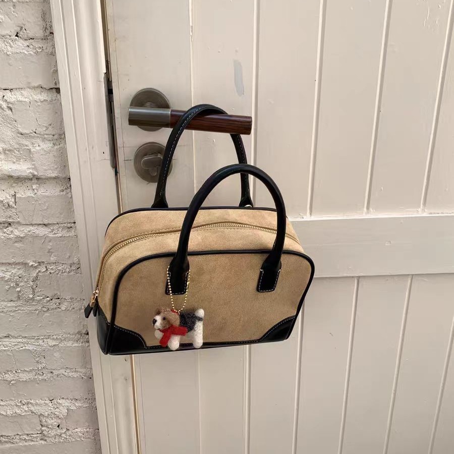 自家製スエードボストンハンドバッグ 韓国ブロガーの女性用バッグ 秋冬ショルダーバッグ 斜め掛けバッグ 小さなスクエアバッグ