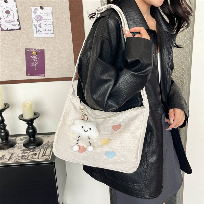 ファッションキャンバスバッグ女性2024秋冬新作カジュアルシンプルショルダーバッグ大容量脇下バッグ通勤ショルダーバッグ