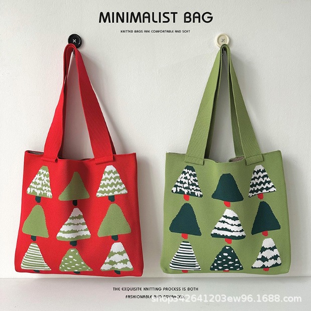 クリスマス風ショルダーバッグ レディース ニッチデザイン ニットハンドバッグ ギフト キャンディバッグ ショッピングバッグ 卸売 クリスマス限定