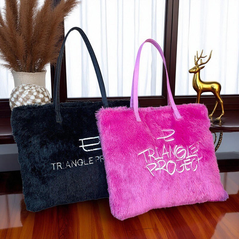 ヨーロッパとアメリカの豪華な模造毛皮の刺繍トートバッグショルダーバッグ男性と女性のための黒とピンクのファッショナブルなハンドバッグ