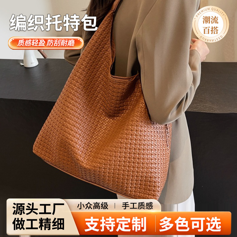 レトロ手織りバッグ女性の 2025 新しいトレンディな韓国ニッチトートバッグカジュアル大容量脇の下バッグ
