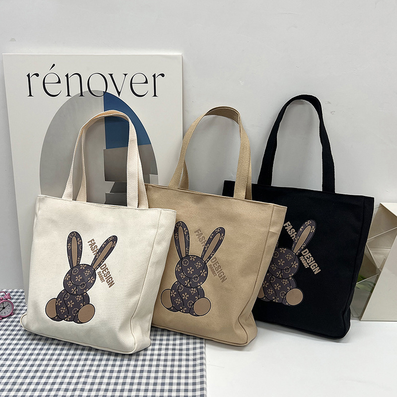 2025 春と秋の新作大容量キャンバスバッグ女性の漫画かわいいファッションシンプルな多用途ショルダートートバッグトレンディ