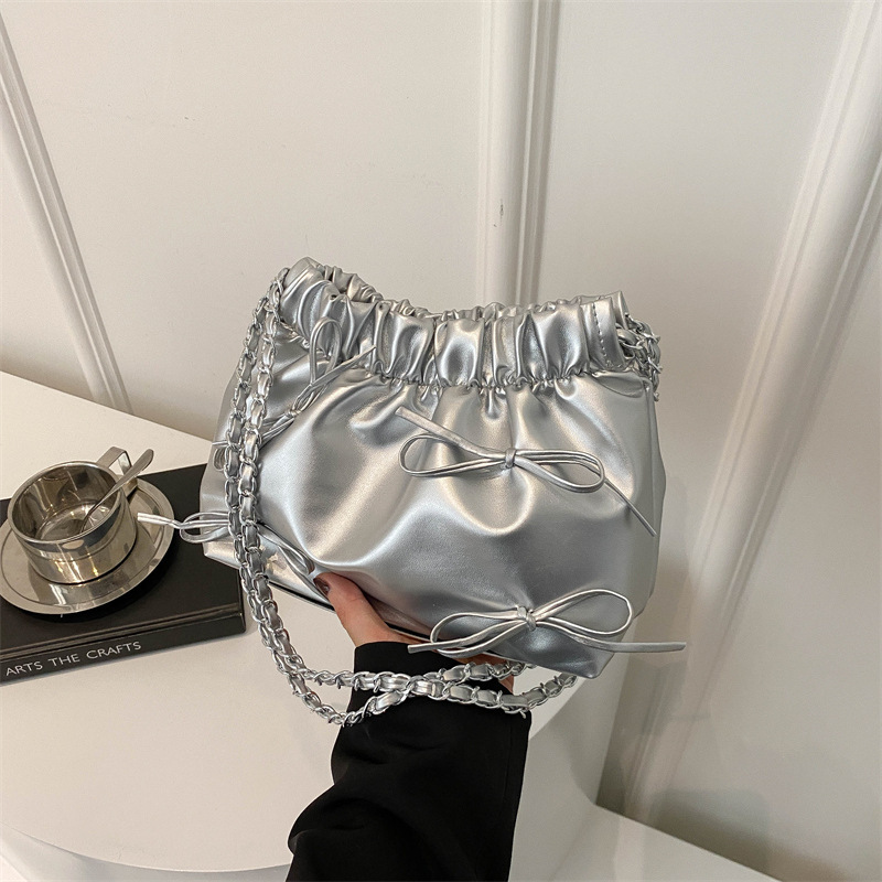 ファッション脇の蝶結びバッグ女性2025韓国版新型シンプルカジュアル枕バッグファッション