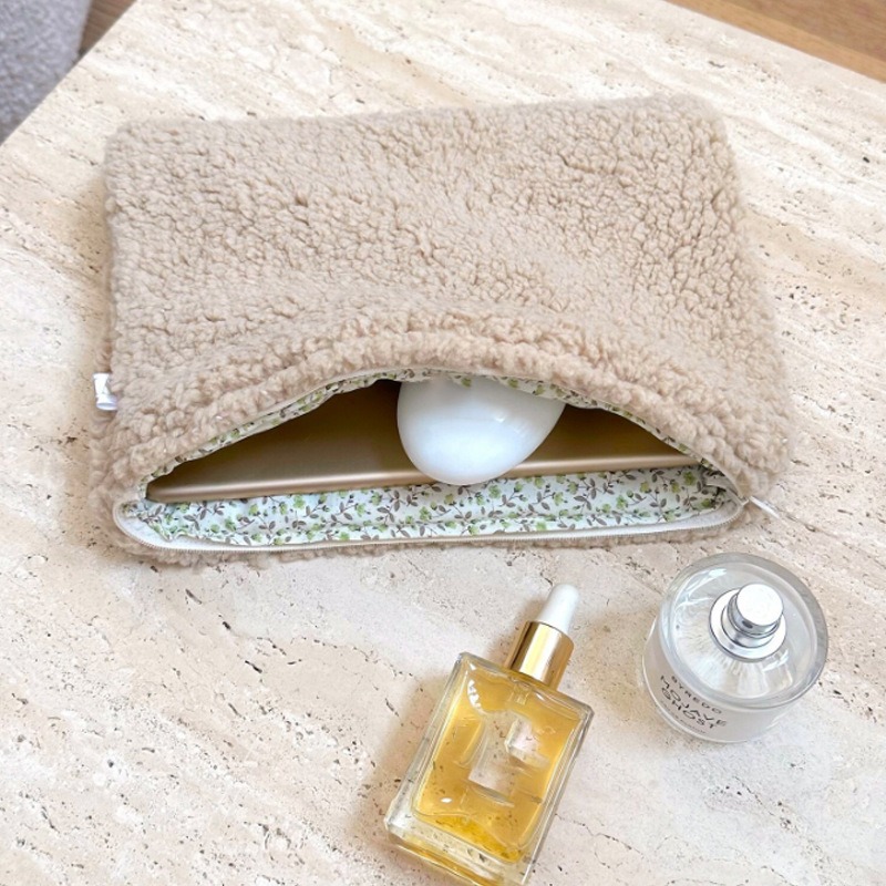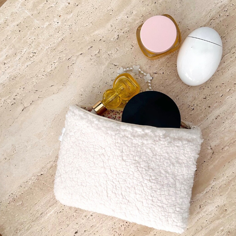 冬の子羊のベルベットは化粧バッグを持って旅行洗面品の収納袋の毛がふわふわしてかわいい化粧品の収納袋を持っている
