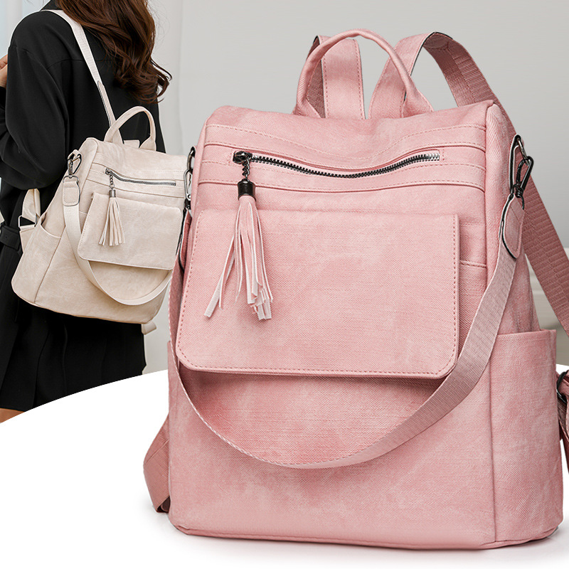 旅行用バックパック、クロスボーダー、ヨーロッパとアメリカ、レトロ、ソフトレザー、ファッショナブルなレディースショルダーバッグ、大容量、学生、通勤、スクールバッグ