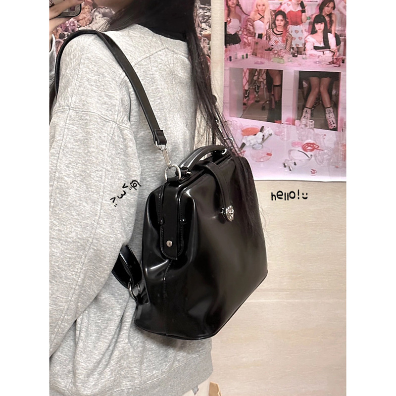 レトロな赤いブリーフケース2024年新作落書き風森ガール可愛いニッチリュック女子中学生高校生学生用バッグ